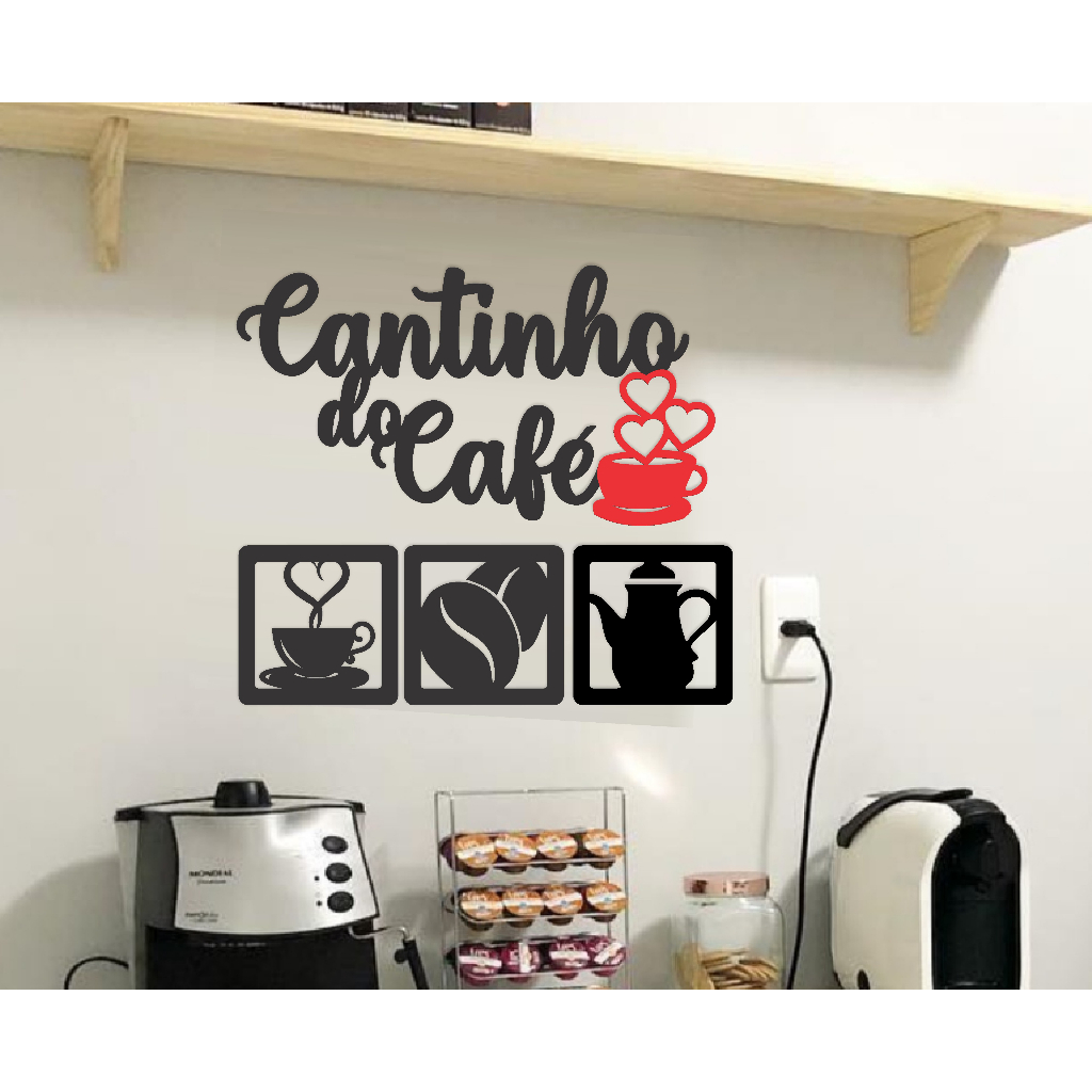 KIT CANTINHO DO CAFÉ 1 PEÇA OU 4 PEÇAS MDF PRETO E VERMELHO ALTO RELEVO 30CM