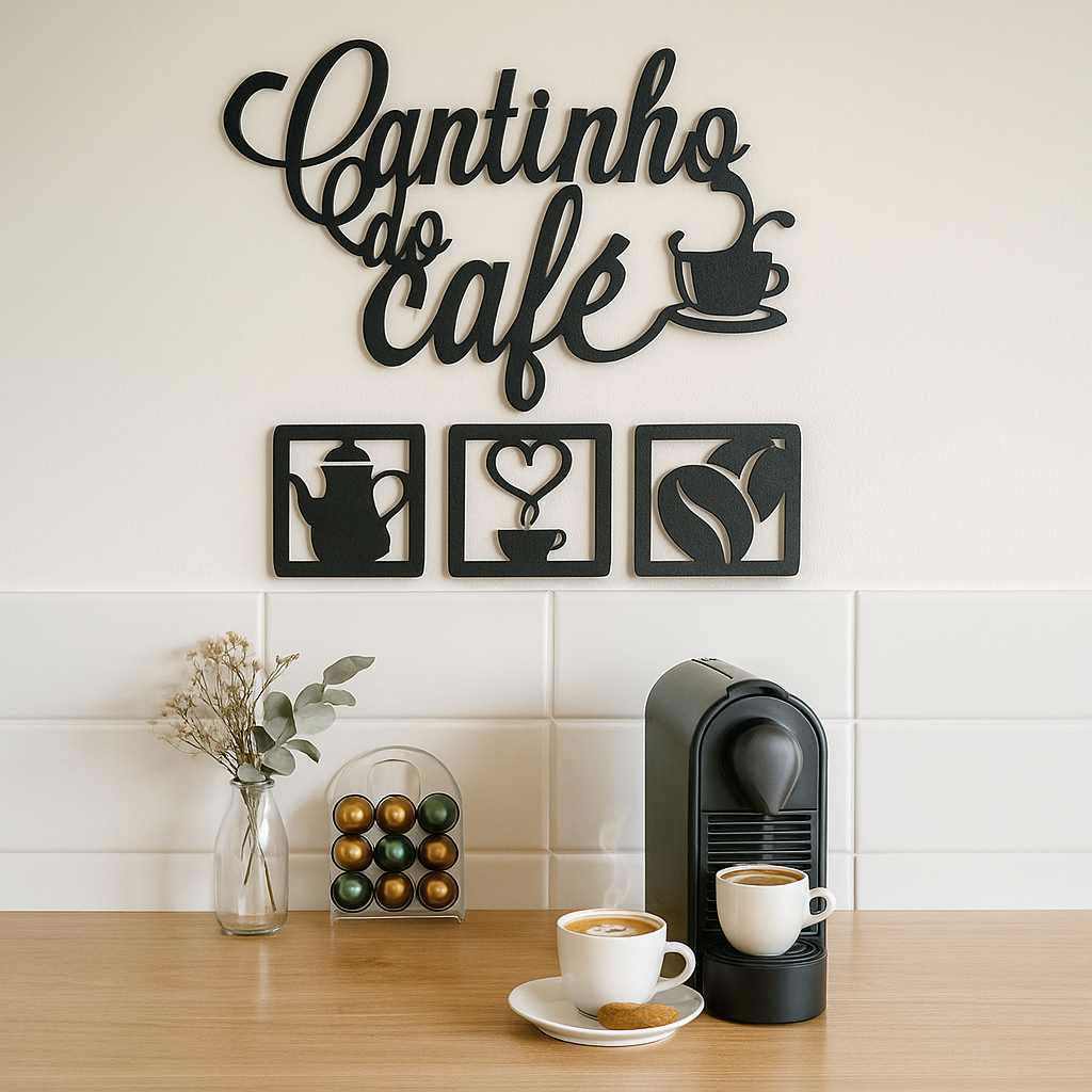 Kit Cantinho do Café 4 Peças MDF Quadro Decorativo Parede Casa Decoração Cozinha