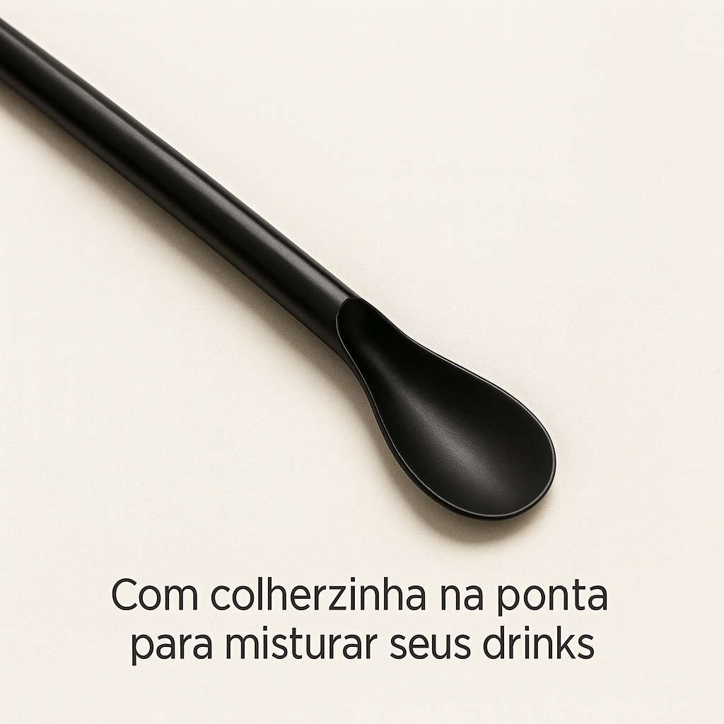 Kit Canudo Mexedor Preto Colher Drink Suco Caipirinha Canudinho Plástico Descartável Festa Bebida