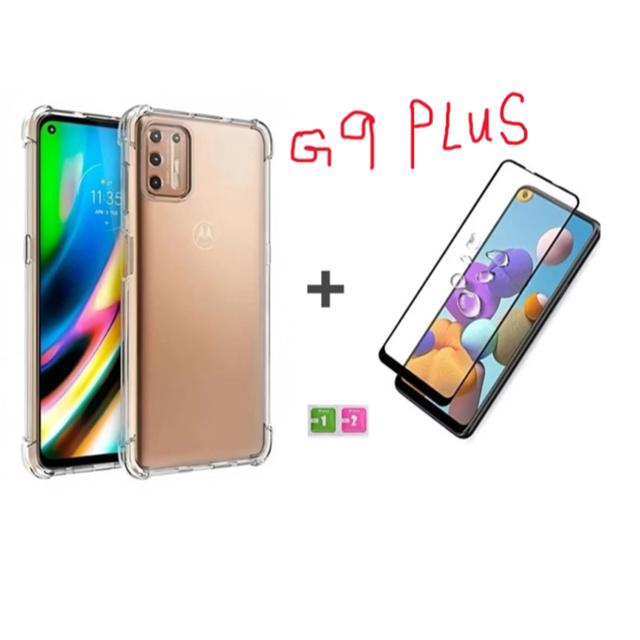 Kit Capa Anti-Impacto + Película 3D/9D P/ Moto G9 Plus