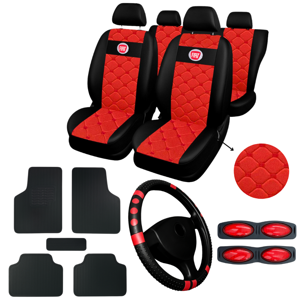 ✅Sobre o produto: ✅Todos os nossos produtos são novos e possuem garantia. ✅ Todos os materiais são de qualidade e de longa durabilidade ✅ Forma de fixação: tiras elásticas ✅ As capas são apenas para vestir por cima da forração original dos bancos ✅ Capas com elásticos ajustáveis dando um ótimo acabamento aos bancos. ✅ Logomarcas disponíveis no modelo: bordada ou sem logo. ✅Diferencial do nosso produto: ✅Proteção contra sujeiras, manchas, rasgos e furos que na maioria das vezes é causado involuntariamente por crianças, animais domésticos entre outras formas de danos aos bancos. ✅Conteúdo da Embalagem: ✅2 Capas para os encosto dianteiros ✅2 Capas para os assentos dianteiros ✅1 Capa para o encosto traseiro ✅1 Capa para o assento traseiro ✅5 Capas para os encostos de cabeça COR DA CAPA DO BANCO DE COURO: ✅PRETO ✅PRETO E CINZA ✅PRETO E VERMELHO ✅PRETO E AZUL ✅PRETO E ROSA ✅ Jogo de Tapetes ( 5 Peças); Tapete confeccionado 100% borracha PVC COR DISPONÍVEL PARA O JOGO DE TAPETES SOMENTE NA COR PRETA. ✅ 1 Capa de volante ✅1 PAR DE PROTETOR PARA PORTAS LUMINOSO ✅modelos de veículos Compatibilidade: SE NÃO ACHAR SEU VEICULO NOS MANDE UMA MENSAGEM ✅FIAT Marea ✅FIAT Tipo ✅FIAT Palio Weekend ✅FIAT Novo Uno ✅FIAT Uno Mille ✅FIAT Strada Cabine Simples ✅FIAT Strada Cabine Dupla ✅FIAT Stilo ✅FIAT Siena ✅FIAT Prêmio ✅FIAT Novo palio ✅FIAT Liena ✅FIAT Idea ✅FIAT Punto ✅FIAT Grand Siena ✅FIAT Fiorino ✅FIAT Pulse ✅FIAT Elba ✅FIAT Cronos ✅FIAT Bravo ✅FIAT Argo ✅FIAT palio ✅FIAT uno Muito obrigado pela visita e boas compras volte sempre!!!