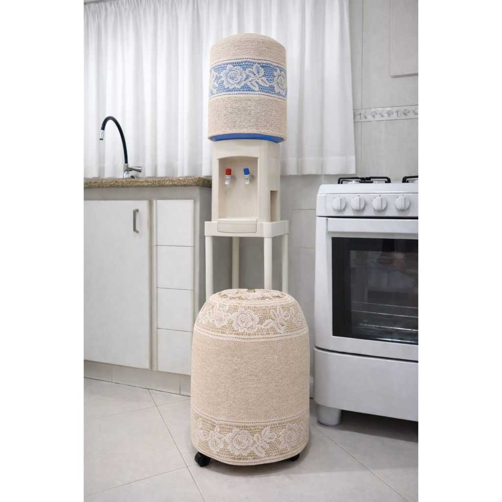 Kit Capa Botijão de Gás + Capa Galão 20L Renda Floral Grossa Luxo Cozinha 2 peças