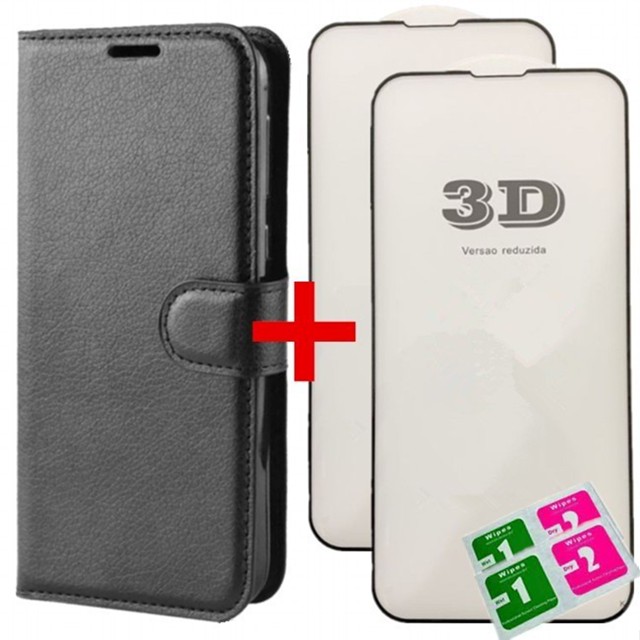 Kit Capa Capinha Carteira Flip + 2 Película de vidro 3D Para Samsung Galaxy A05 A05s A14 A15 A24 A25 A34A35 A54 A55