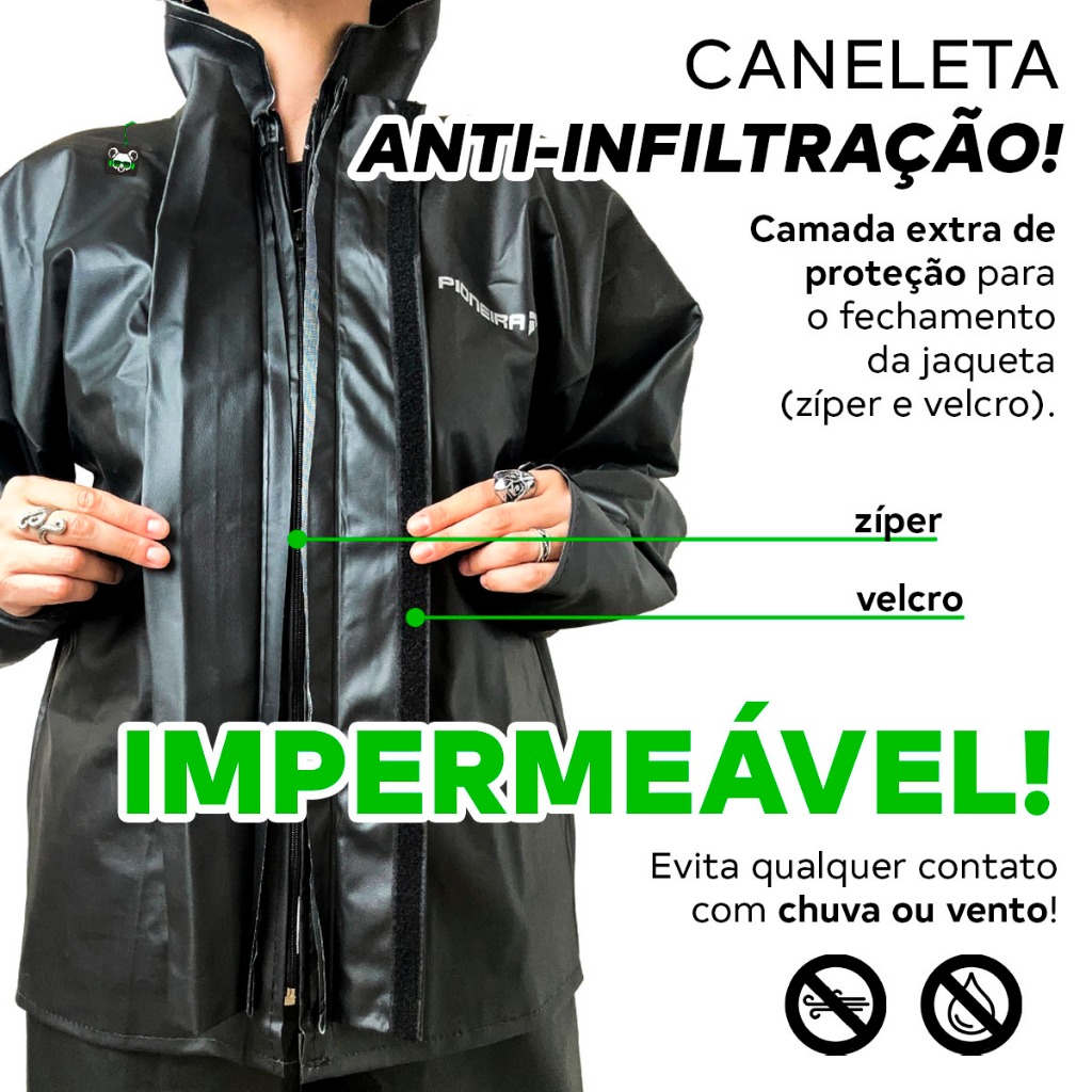 Kit de Proteção Conjunto PVC Pioneira + Bota PVC Vonder sola Amarela KIT COMPLETO - CONJUNTO JAQUETA DE CHUVA E CALÇA (100% IMPERMEÁVEL) + BOTA SOLADO AMARELO Seja para enfrentar os dias de chuva ou ventos intensos, o Kit de Proteção tem o que há de melhor em vestuário e calçados com qualidade e conforto! O Conjunto de PVC Flex (jaqueta + calça) da Pioneira, feito com material 3x mais resistente, oferece conforto e durabilidade, e a Bota PVC Vonder, com certificação ABNT, garante segurança e aderência em qualquer piso. - Impermeabilidade total - Material super resistente - Detalhes refletivos - Multifuncional - Interior confortável FIQUE PREPARADO PARA QUALQUER DESAFIO! Use em deslocamentos de moto, construção civil, agroindústria, pesca, limpeza em geral… SEGURANÇA, VISIBILIDADE E CONFORTO O solado amarelo da Bota PVC Vonder sinaliza atenção, e a jaqueta de PVC Pioneira com detalhes refletivos nas costas e punhos, são perfeitos para motociclistas e trabalhadores de áreas com baixa iluminação. RESISTÊNCIA AO ESCORREGAMENTO - CATEGORIA SRC Piso de cerâmica e aço contaminado com glicerol ou detergente, sem preocupações! O solado Full Grip antiderrapante da Bota Vonder é Categoria SRC, com testagem comprovada de resistência ao escorregamento em piso de ladrilho de cerâmica com solução sabão (NaLS) e resistência ao escorregamento em piso de aço com glicerina. CONJUNTO CONFORTÁVEL E ESTILOSO Para um ajuste perfeito, o conjunto de PVC Pioneira conta com regulagem em velcro nos punhos da jaqueta e na bainha da calça, sem brechas para a chuva te molhar ESPECIFICAÇÕES TÉCNICAS: Conjunto Pvc Pioneira - Cor: preta - PVC de 0,03mm - Calça com Elástico - Jaqueta com fechamento em zíper e velcro - Símbolo Refletivo Microprismático - Canaleta anti-infiltração - Regulador de ajuste em velcro nos punhos e bainha Bota PVC Vonder - Cor: Preta - Solado: Amarelo - Material: PVC injetado - Acabamento interno: Forrado - Tamanho do cano: Médio - Comprimento do cano: 29cm - Tipo de solado: PVC - Peso aproximado: 1,97kg o par - Selo ABNT NBR ISO 20347: atende aos requisitos para calçados ocupacionais - Categoria SRC: certificação de resistência ao escorregamento para piso de ladrilho de cerâmica com solução sabão (NaLS) e piso de aço com glicerina. Conteúdo da Embalagem: - 01. Conjunto Ajustável de PVC c/ gola Preto - 01 Par de Botas PVC Vonder Solado Amarelo *O conjunto pode ter variação aproximada de 2cm. Consulte a tabela de medidas **A numeração da bota é coerente com a numeração de calçados normais. Recomendamos comprar a sua numeração usual para maior conforto e segurança. Tem alguma dúvida? Mande uma mensagem que te ajudamos! Time Koala Parts