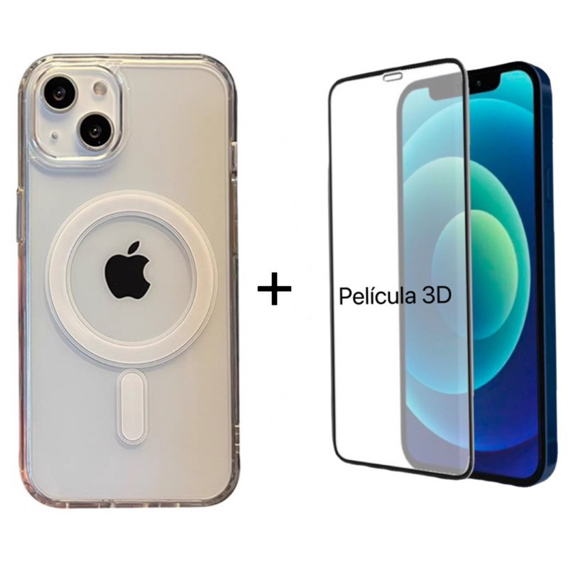 kit Capa De Celular Magnética Anti-Impacto Para iPhoneXR 11 12 13 14 15 com película De Vidro 3D