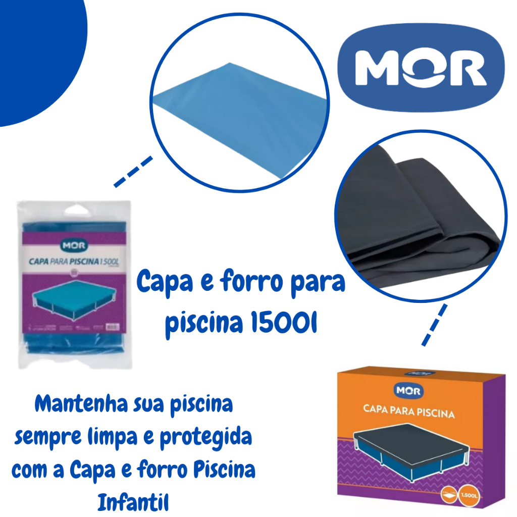 KIT CAPA E FORRO PISCINA 1500 MOR + ÓCULOS E LANÇA AGUA ÓCULOS E LANÇA AGUA ENVIADO CONFORME DISPONIBILIDADE DE ESTOQUE. ****** NÃO ACOMPANHA PISCINA PRODUTO ORIGINAL A PRONTA ENTREGA Descrição da Capa: Mantenha sua piscina sempre limpa com a Capa Piscina Infantil! Ela é perfeita para proteger contra insetos parasitas, água da chuva, folhas e sujeiras em geral, conservando a água da piscina própria para banho por muito mais tempo, ajudando assim o meio ambiente. Produzida em PVC, a Capa possui cordas em poliéster para serem fixadas na estrutura da Piscina Infantil de 1.500 litros. Lembrando que, além da Capa, é indispensável fazer o tratamento químico recomendado para a capacidade de água da sua piscina de acordo com seu Manual! CARACTERÍSTICA DO PRODUTO: Material: PVC Formato: QUADRADO Cor: Azul Capacidade: 1.500 Litros DIMENSÕES DO PRODUTO: Altura: 0,01 Cm Largura: 2,19 M Comprimento: 2,19 M Peso: 1,04 Kg Descrição do Forro: Garanta maior durabilidade para sua piscina utilizando o Forro Piscina Infantil Mor, protegendo-a de pequenos objetos. Recomendado para piscinas de 1.500 Litros, é produzido em polietileno de alta qualidade, assegurando alto nível em resistência, sendo leve e de fácil locomoção. O Forro Mor faz toda a diferença para a durabilidade da sua piscina, tornando-a mais resistente e perfeita para curtir a estação mais gostosa do ano. CARACTERÍSTICA DO PRODUTO: Material: Polietileno Formato: Quadrado Cor: Azul Capacidade: 1.500 Litros DIMENSÕES DO PRODUTO: Altura: 0,01 cm Largura: 1,81 m Comprimento: 1,81 m Peso: 262,00 g Mor Olá! Bem-vindos à MOR! Uma empresa brasileira, que tem como vocação criar soluções inovadoras e de qualidade aos seus consumidores. Nascida no município de Santa Cruz do Sul, a MOR começou como uma empresa familiar, que fabricava produtos para apicultura em uma pequena metalúrgica, no início dos anos 60.