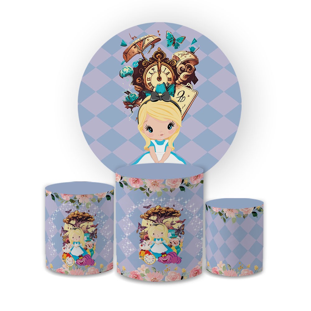Kit Capa Painel Alice No Pais Das Maravilhas Varios Modelos + Trio Capas De Cilindro