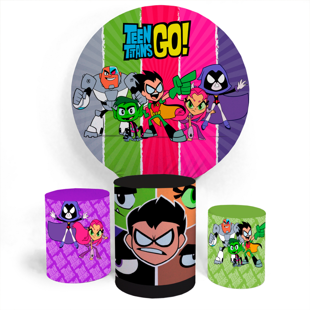 Kit Capa Painel Circular E Capa Cilíndro Personalizada Festa De Aniversário Juvenil Tema Jovens Titans