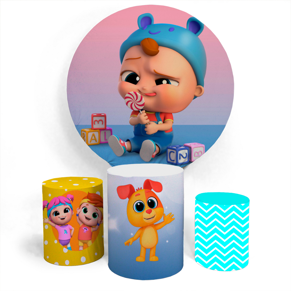 Kit Capa Painel De Festa Circular E Capa Trio Cilíndro Decoratrivo Temático Little Angel