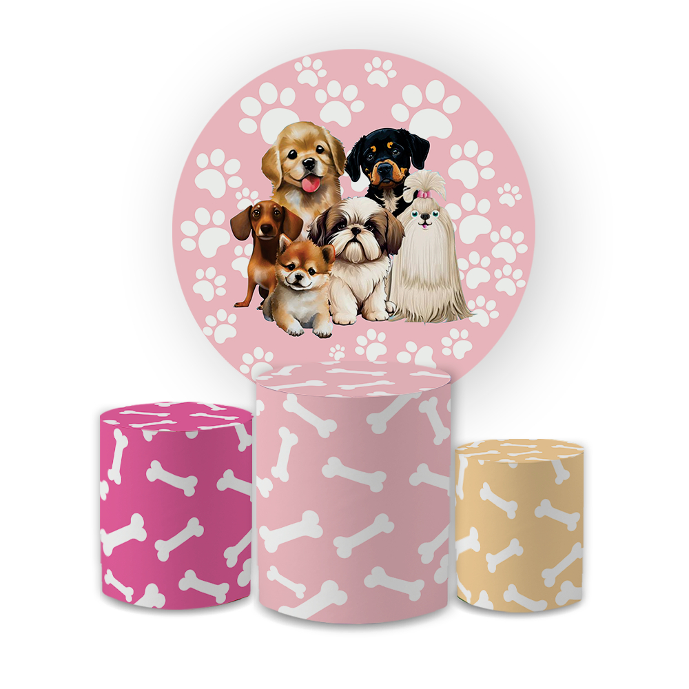 Kit Capa Painel Redondo 1,5 + Trio Cilindros Decoração Aniversário Pet Shop Cachorros Cute