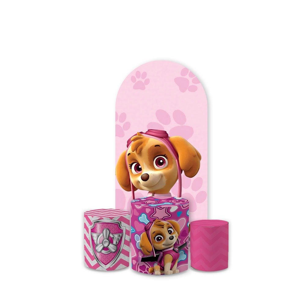 Kit Capa Painel Redondo + Trio Capas Cilindros Veste Fácil Decoração Infantil Tema Sky Patrulh@ C.