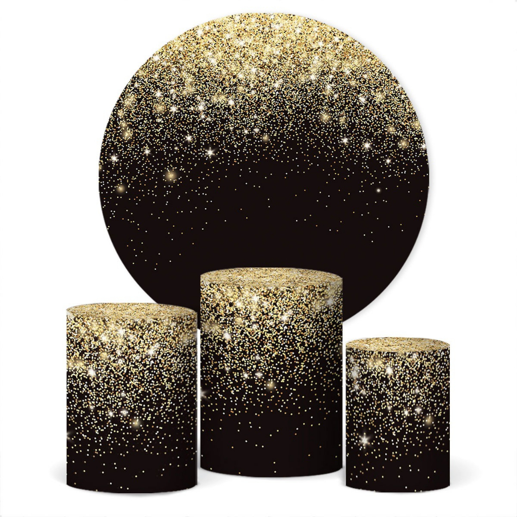 Kit Capa Painel Redondo + Trios de Cilindros Sublimado Malha New Festa Glow Glitter Aniversário Kids
