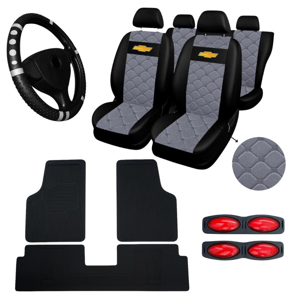 ✅Sobre o produto: ✅Todos os nossos produtos são novos e possuem garantia. ✅ Todos os materiais são de qualidade e de longa durabilidade ✅ Forma de fixação: tiras elásticas ✅ As capas são apenas para vestir por cima da forração original dos bancos ✅ Capas com elásticos ajustáveis dando um ótimo acabamento aos bancos. ✅ Logomarcas disponíveis no modelo: bordada ou sem logo. ✅Diferencial do nosso produto: ✅Proteção contra sujeiras, manchas, rasgos e furos que na maioria das vezes é causado involuntariamente por crianças, animais domésticos entre outras formas de danos aos bancos. ✅Conteúdo da Embalagem: ✅2 Capas para os encosto dianteiros ✅2 Capas para os assentos dianteiros ✅1 Capa para o encosto traseiro ✅1 Capa para o assento traseiro ✅5 Capas para os encostos de cabeça COR DA CAPA DO BANCO DE COURO: ✅PRETO ✅PRETO E CINZA ✅PRETO E VERMELHO ✅PRETO E AZUL ✅PRETO E ROSA ✅ Jogo de Tapetes ( 5 Peças); Tapete confeccionado 100% borracha PVC COR DISPONÍVEL PARA O JOGO DE TAPETES SOMENTE NA COR PRETA. ✅ 1 Capa de volante ✅1 PAR DE PROTETOR PARA PORTAS LUMINOSO ✅modelos de veículos Compatibilidade: SE NÃO ACHAR SEU VEICULO NOS MANDE UMA MENSAGEM ✅ GM AGILE ✅ GM ASTRA ✅ GM BLAZER ANTIGA ✅ GM BOLT ✅ GM CAPTIVA ✅ GM CELTA ✅ GM CHEVETTE ✅ GM CLASSIC ✅ GM COBALT ✅ GM CORSA ✅ GM CORSA SEDAN ✅ GM CRUZE ✅ GM EQUINOX ✅ GM KADETT ✅ GM MERIVA ✅ GM MONTANA ✅ GM MONZA ✅ GM MONZA TUBARÃO ✅GM NEW CRUZE ✅ GM OMEGA ✅ GM ONIX NOVO ✅ GM ONIX ✅ GM ONIX SEDAN ✅ GM OPALA ✅ GM S10 ✅ GM S10 ANTIGA ✅ GM SILVERADO ✅ GM SPIN ✅ GM TRACKER NOVA ✅ GM TRACKER ✅ GM TRAIL BLAZER ✅ GM VECTRA ✅ GM ZAFIRA Muito obrigado pela visita e boas compras volte sempre!!!