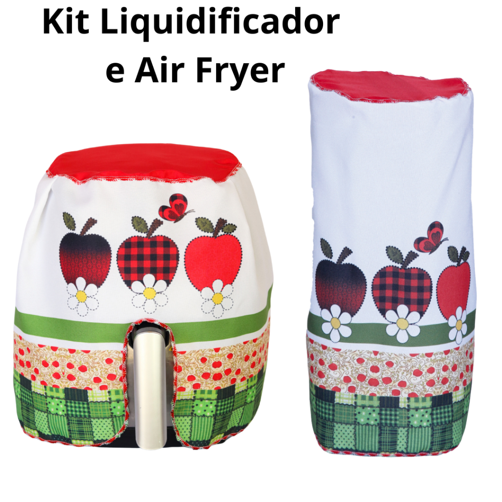 Além de decorar e deixar a sua cozinha mais bonita e alegre, a capa protege seu liquidificador e sua fritadeira elétrica da poeira e da gordura que pode-se acumular com o tempo. Confeccionada com muito carinho e capricho, possui ótimo material e acabamento perfeito. Especificações da Capa Liquidificador: - Diâmetro: 16 cm - Altura: 40 cm - Composição: Oxford estampado Especificações da Capa Fritadeira: - Tamanho: para fritadeiras de 3,5 a 5 litros. - Composição: Oxford estampado **As cores do produto podem variar de acordo com o monitor, a iluminação do ambiente, sua percepção visual e podem sofrer variações de cores, e estampa conforme o corte ou lote de tecido, porém sempre será respeitado o tema do anúncio.** Instruções de lavagem: - Lavar com temperatura máxima de 40 graus; - Não utilizar cloro; - Não permitida secagem a máquina; - Temperatura máxima do ferro em 110 graus; - Permitida lavagem a seco. Conteúdo do pacote: - 1 capa para liquidificador - 1 capa para fritadeira