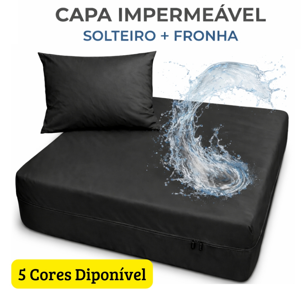 Kit Capa Protetora Solteiro + Fronha Tecido Hospitalar 100% Impermeável Com Ziper