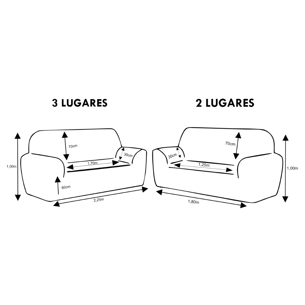 Capa de sofá 2 e 3 lugares Coladinha Mista Estampas Exclusivas Atualize o visual da sua sala com o Kit de Capa para Sofá de 3 e 2 Lugares, uma combinação encantadora de estampas florais e lisas. Estas capas proporcionam uma renovação instantânea aos seus sofás, oferecendo uma mistura equilibrada entre elegância e estilo. Com design versátil, as estampas florais adicionam um toque de vivacidade, enquanto os detalhes lisos proporcionam um visual equilibrado. Transforme seus sofás com este kit prático e moderno, criando um ambiente aconchegante e cheio de personalidade. 2 Lugares: Altura do sofá - 1,00m Altura máxima do braço - 90cm Profundidade do assento - 60cm Largura interna - 1,20m Largura total - 1,70m 3 Lugares: Altura do sofá - 1,00m Altura máxima do braço - 90cm Profundidade do assento - 60cm Largura interna - 1,70m Largura total - 2,20m CONTÉM: 01 Jogo de Capa de sofá de 2 e 3 lugares AGARRADINHA MISTA COMPOSIÇÃO: Tecido malha gel