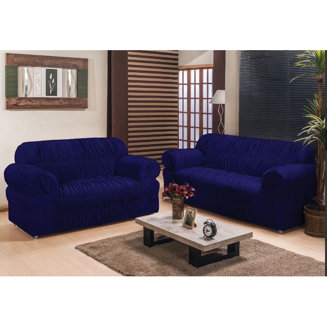 Kit Capa Sofá Franzida Malha Gel Elasticada 2 e 3 Lugares
