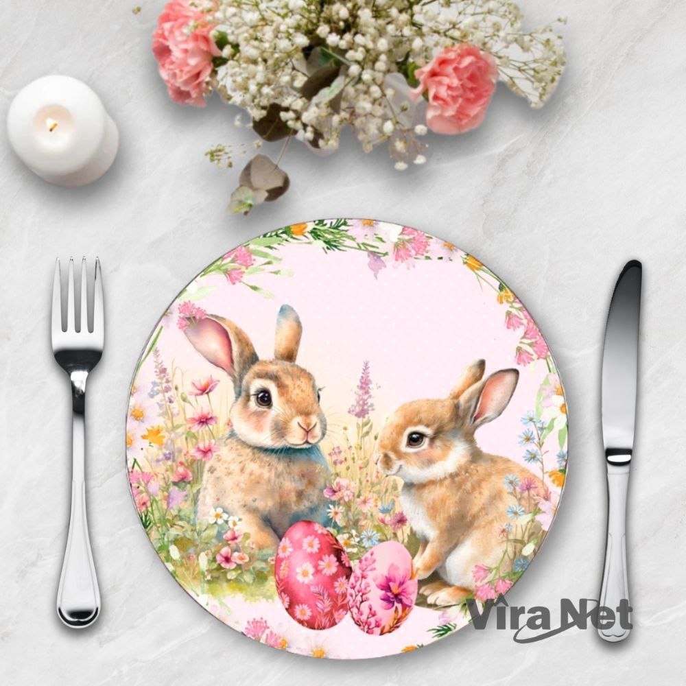 Kit Capa Sousplat Páscoa Coelhos Estampados Organização Mesa Casa Cozinha Multiuso 2/4/6 Peças