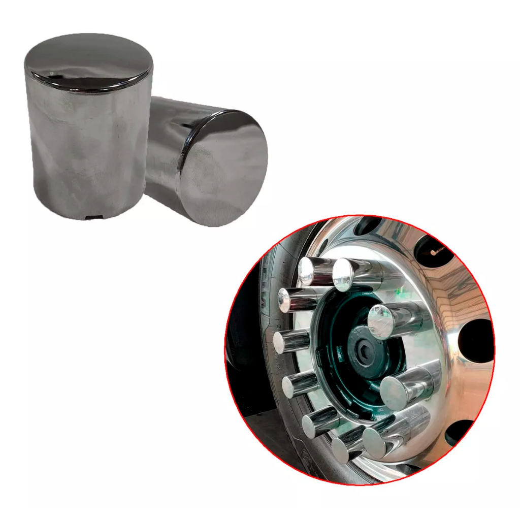 KIT CAPA TAMPA DE PORCA 32MM E 33MM BOLIVIANA CROMADA CAMINHÕES E ÔNIBUS