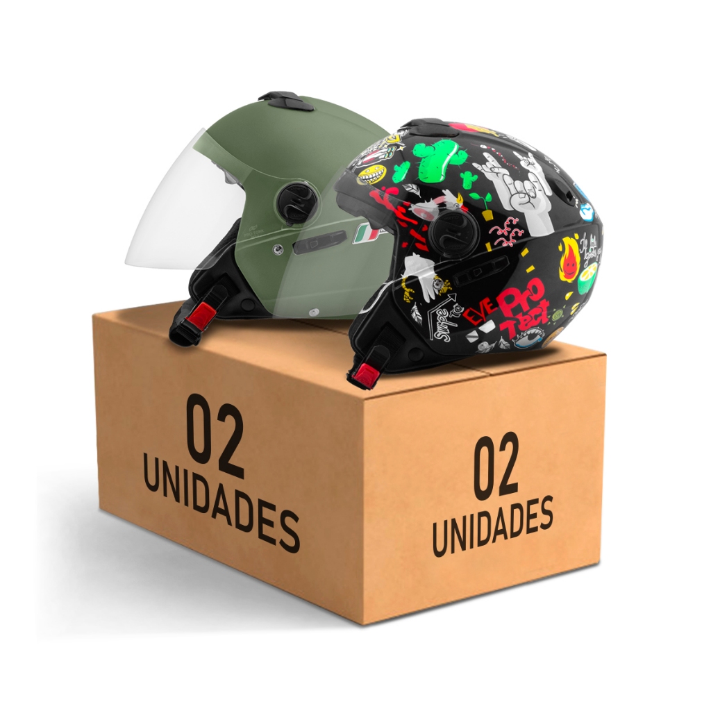 | Kit Capacete Aberto Protork New Atomic Elite + New Atomic Universe ... este produto | R$ 234,63 | 47% | 5.0/5 | — |