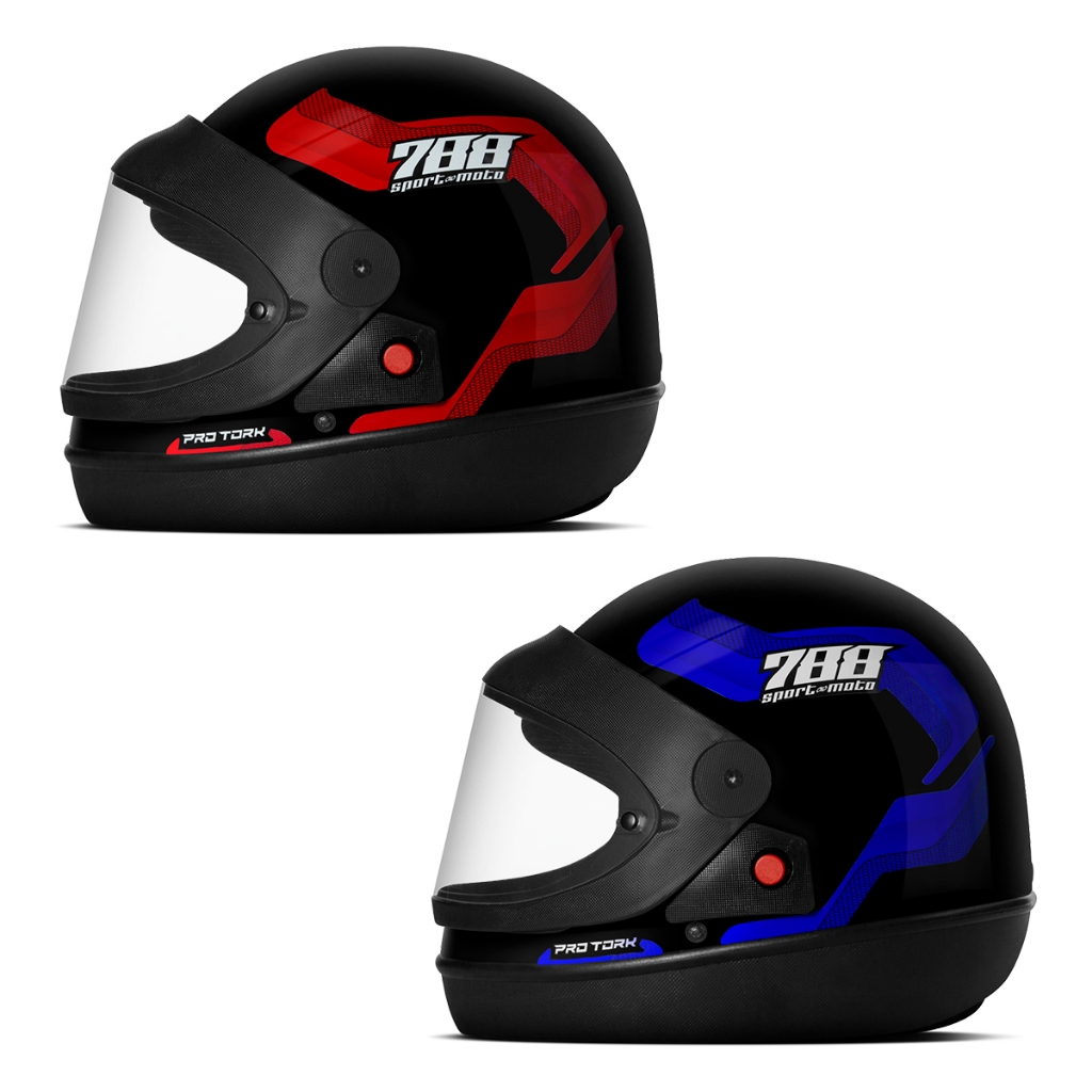 Kit Capacete Moto Masculino e Feminino Integral Pro Tork Sport Moto 788 Viseira Automática Vermelho