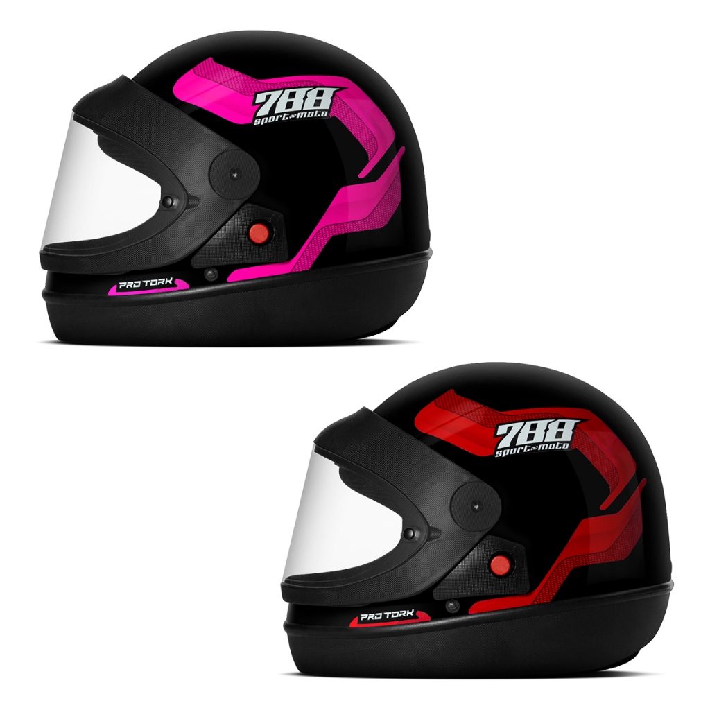 Kit Capacete Moto Masculino e Feminino Integral Pro Tork Sport Moto 788 Viseira Automática Rosa