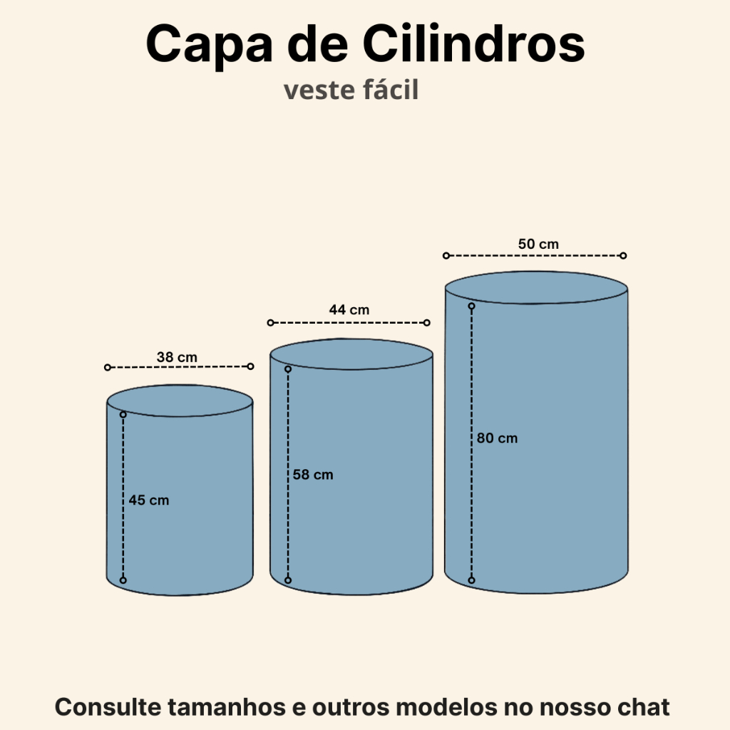 Seja Bem vindo a Loja Oficial da IBITEX na Shopee Somos Fabricantes de Capas de Sofá, Capas de Cadeira, Capas para todos os tipos de Colchões e vários itens para seu lar. Neste Pedido Contém 01 Painel romano meia-lua 2m x 1m dupla face (um lado de cada cor) 01 Capa de Cilindro P 45cm x 38cm de diâmetro (somente um cor) 01 Capa de Cilindro M 58cm X 44cm de diâmetro (somente um cor) 01 Capa de Cilindro G 80cm X 50cm de diâmetro (somente um cor) Vantagens: Sistema Veste Fácil (acabamento com elástico permitindo que você possa vestir sua estrutura com facilidade); Não reflete a luz; Não Amassa; Não Desbota; Super Prático; 100% poliéster de Alta Qualidade; Costrura Overlock, evitando que o tecido desfie; Gramatura: 90 g/m². Tecido: Helanca Ligth Nossas capas de cilindros e painel meia-lua pode ser utilizada para Decoração de diversos temas, temos mais de 20 cores disponíveis que você pode fazer centenas de combinações diferentes e personalizar com apliques, balões e tudo que sua imaginação permitir. Pare de sofrer tentando amarar tecidos no seu painel, estica daqui, bucha dali, amara as pontas uma confusão danada e no final nunca fica perfeito, sempre tem sobra de tecido, uma amarração horrível no verso, sem contar o tempo perdido. ATENÇÃO: *** NÃO acompanha estrutura de madeira, mdf, metalon ou ferro **** ------------------------------------------------------------------------------------------