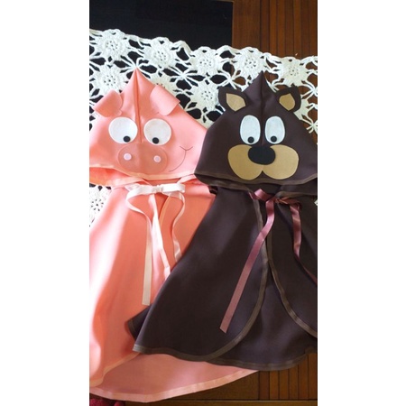 Kit capas Infantil de 2 a 6 anos contém 1 lobo e 1 porquinho tecido Oxford Lobo mau e Três Porquinhos.