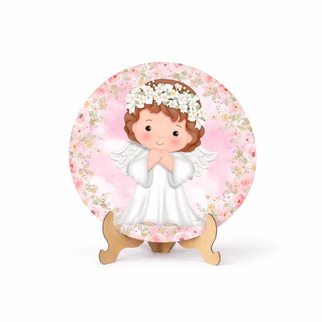 Kit Capas Painel Redondo + Cilindros Decoração Batizado Anjo Menina REF 225