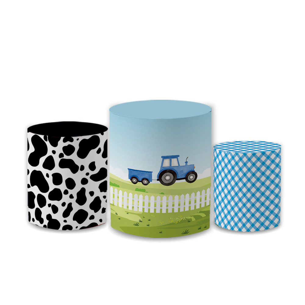 Kit Capas Trio Cilindros Tema Fazendinha Decoração Veste Fácil Aniversário Infantil