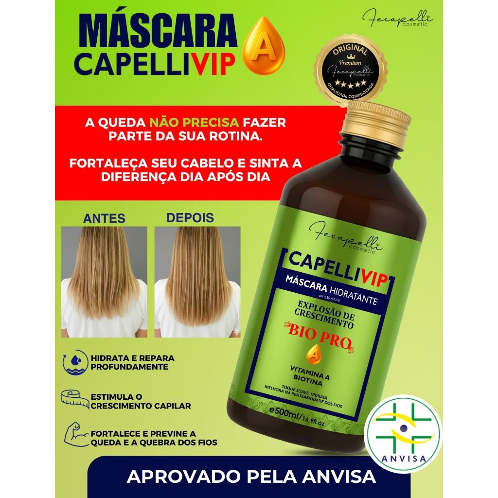 Kit CapelliVip Shampoo + Máscara 500ml +finalizador (Certificação Anvisa)