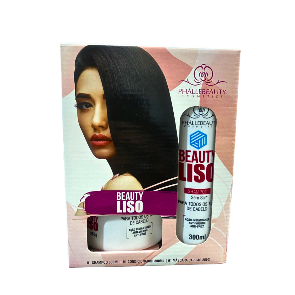 A linha Beauty Liso PhalleBeauty possui uma fórmula balanceada com tensoativos suaves associados ao D'Pantenol e à Queratina e Óleo de Rícino, que remove as sujidades da fibra capilar, proporcionando uma maleabilidade natural. Age suavizando os fios deixando-os super sedosos e macios. Garantindo hidratação, nutrição e força a fibra capilar. Kit contendo: - 1 Shampoo - 1 Condicionador - 1 Máscara capilar.
