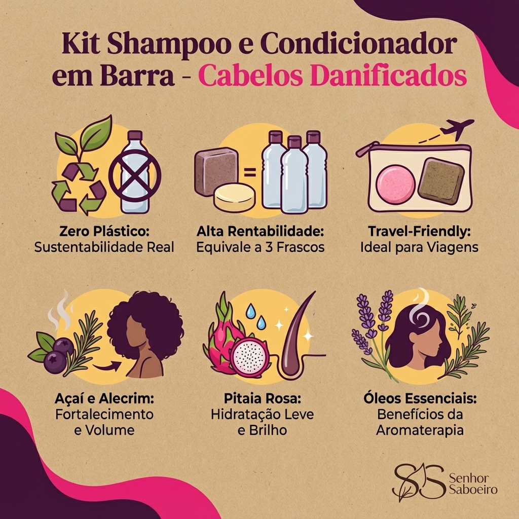Kit Capilar Cabelos Secos Oleosos Danificados Shampoo e Condicionador em Barra - Anticaspa Antiqueda Detox Nutrição