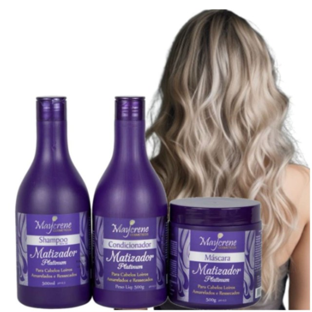 Kit Capilar Matizador Platinum 3 itens Shampoo + Mascara + Condicionador Maycrene Cosméticos