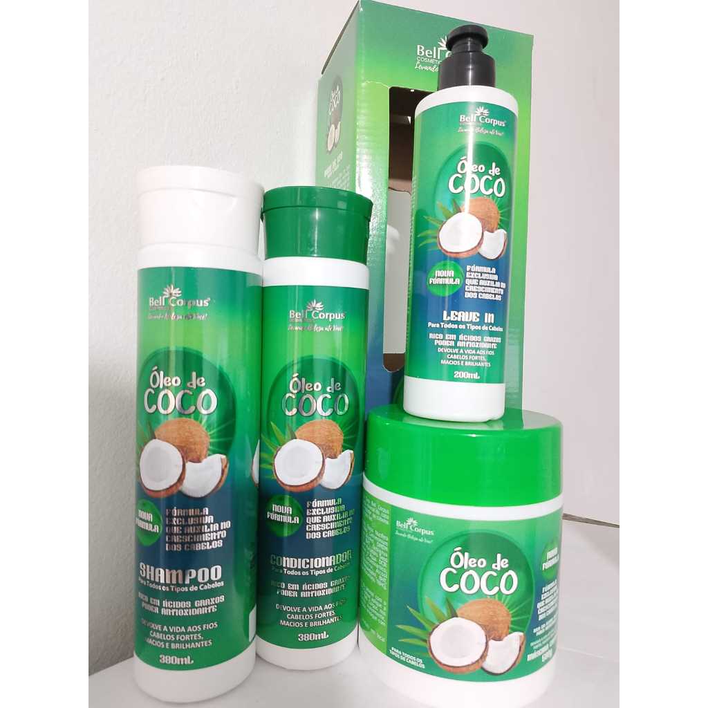Kit Capilar Óleo de Coco Tratamento Capilar Crescimento e Reparador de Pontas Bell Corpus - 5 itens - PROMOÇÂO