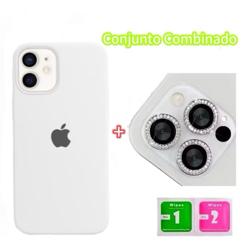 Kit Capinha Silicone Aveludado Original+Lente Película De Câmera Diamante Para iphone11 12 13 Pro Promax