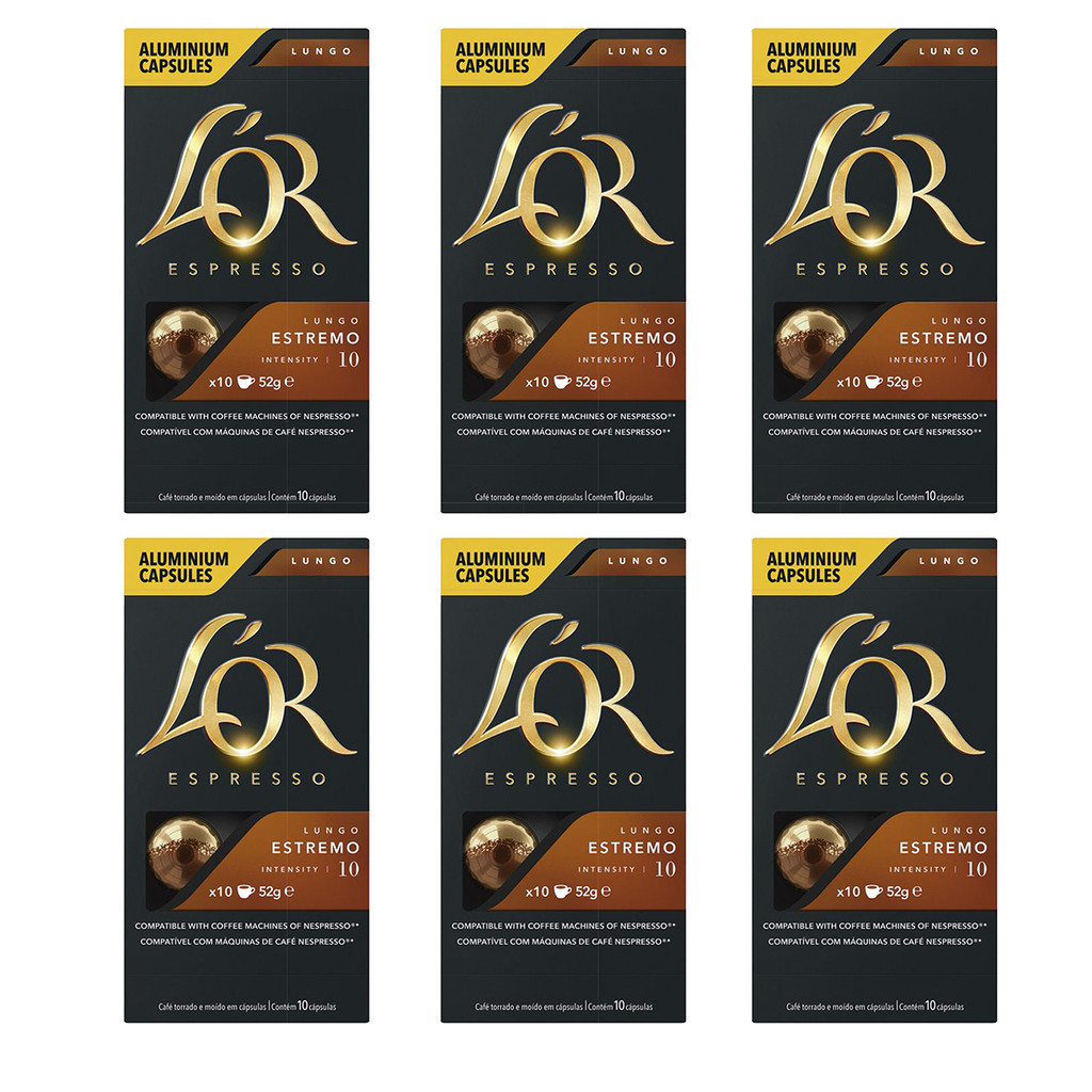 Kit Cápsulas de Café Lor Linha Regular com 60 unidades Buscando o equilíbrio entre sabores suaves e intensos, a nossa Linha Regular de cápsulas de café vai proporcionar experiências marcantes na sua xícara de café do dia a dia. Diferentes blends que vão te entregar uma diversa combinação de aromas, sabores e intensidades. Conheça as cápsulas de café L’OR, descubra notas únicas em cada degustação e conheça a verdadeira obra-prima em sabor. As cápsulas de café Lor são compatíveis com máquinas de café Nespresso®*. Linha Regular: FORZA: Liberte o poder do FORZA. Um espresso intenso, com notas de carvalho e alcaçuz e iluminado com tons de âmbar sobre uma delicada camada de crema. Descubra a sofisticação dos cafés em cápsulas LOR e se envolva no equilíbrio de sabores suaves e intensos. Intensidade: 09 / Aroma: Intenso, Encorpado, Impetuoso / Extração: Expresso Embalagem: 6 caixas contendo 10 cápsulas com 5,2g cada LUNGO ESTREMO: Uma ousada combinação, assim é o LUNGO ESTREMO. Um passeio místico pelo tentador aroma de um espresso de torra intensa, com notas de especiarias. Tudo para obter uma experiência de um café forte e encorpado. Descubra a sofisticação dos cafés em cápsulas LOR e se envolva no equilíbrio de sabores suaves e intensos. Intensidade: 10 / Aroma: Picante, Poderoso, Ousado / Extração: Lungo Embalagem: 6 caixas contendo 10 cápsulas com 5,2g cada ONYX: O intenso ONYX é a essência máxima do espresso puro: uma torra intensa de grãos, finamente moídos para desvendar uma combinação profunda e com sabor picante, junto com um esplêndido toque amargo de cacau. Descubra a sofisticação dos cafés em cápsulas LOR e se envolva no equilíbrio de sabores suaves e intensos. Intensidade: 12 / Aroma: Intenso, Poderoso, Marcante / Extração: Expresso Embalagem: 6 caixas contendo 10 cápsulas com 5,2g cada RISTRETTO: deslumbra os sentidos com a sua personalidade viva e fresca, com um potente aroma picante. Uma combinação ideal que, na busca da perfeição do espresso, o levará a uma experiência intensa e inesquecível. Descubra a sofisticação dos cafés em cápsulas LOR e se envolva no equilíbrio de sabores suaves e intensos. Intensidade: 11 / Aroma: Poderoso, Expressivo, Ideal / Extração: Ristretto Embalagem: 6 caixas contendo 10 cápsulas com 5,2g cada RISTRETTO DESCAFEINADO: Força e corpo. É assim a forte personalidade do RISTRETTO DESCAFEINATTO, um saboroso blend que capta ligeiras notas de madeira, juntamente com notas de amêndoas torradas e é coroado com uma fina camada de crema dourada. Descubra a sofisticação dos cafés em cápsulas LOR e se envolva no equilíbrio de sabores suaves e intensos. Intensidade: 09 / Aroma: Refinado, Forte, Vibrante / Extração: Ristretto Descafeinado Embalagem: 6 caixas contendo 10 cápsulas com 5,2g cada SONTUOSO: O delicado SONTUOSO é um espresso clássico com notas de amêndoas torradas e um toque floral inspirador, finalizado com o brilho âmbar de uma saborosa e sedosa camada de crema. Descubra a sofisticação dos cafés em cápsulas LOR e se envolva no equilíbrio de sabores suaves e intensos. Intensidade: 08 / Aroma: Floral, Notas de Castanha, Prazeroso / Extração: Expresso Embalagem: 6 caixas contendo 10 cápsulas com 5,2g cada ÚLTIMO: Um intenso e marcante espresso de torra escura com um aroma vívido e fascinante, revelando notas complexas de chocolate amargo. Esse espresso proporciona a experiência de um café encorpado já no primeiro gole, prolongando o sabor das agradáveis notas de chocolate do café torrado. Descubra a sofisticação dos cafés em cápsulas LOR e se envolva no equilíbrio de sabores suaves e intensos. Intensidade: 13 / Aroma: Poderoso, Expressivo, Ideal / Extração: Expresso Embalagem: 6 caixas contendo 10 cápsulas com 5,2g cada