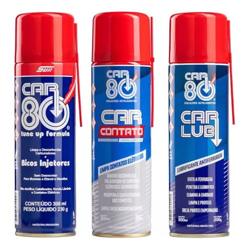 Kit Car80 Descarbonizante + Limpa Contato + Desengripante