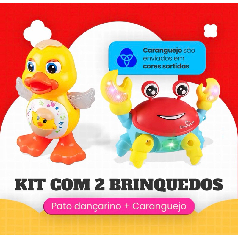 | Kit Caranguejo Fujão e Patinho Dançarino Brinquedo Musical Dança An... este produto | R$ 58,99 | 46% | 4.9/5 | 1 mil |