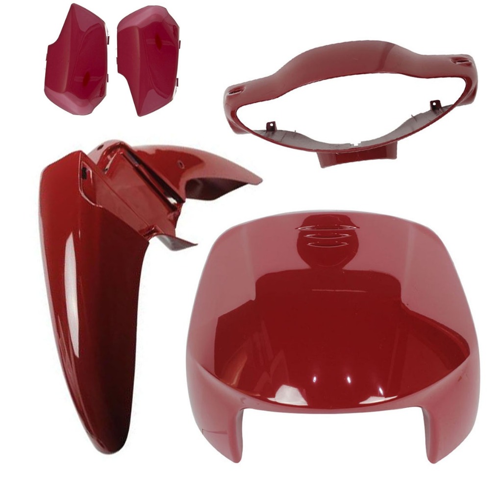 Recomendações: - Antes de finalizar a compra, certifique-se de que sua moto seja compatível com algum dos modelos abaixo. Pois o produto é pronto para instalação e não necessita de nenhum tipo de adaptação; Instalação: A instalação deve ser feita por um profissional especializado, a loja não se responsabiliza pela má instalação que possa gerar danos no produto. OBS: - Imagem Ilustrativa: Pode haver diferença de tonalidade entre a imagem e o produto real por conta do tratamento de imagens e a calibração de cores da tela de seu monitor ou aparelho. Aplicação: Componentes do Kit: - 1 Bico Frontal; - 1 Par de Capa de Bengala; - 1 Carenagem do Farol; - 1 Paralama Dianteiro. Fabricado em termoplástico de alta resistência com pigmentos a prova de raios UV. Confeccionado em plástico rígido fruto de materiais de extrema qualidade, é também muito leve. Características: - As peças são pintadas e envernizadas, na cor compatível ao padrão original - Não Acompanha Adesivos - Produto compatível com padrão Original - Produzidos com os melhores equipamentos, garantindo segurança e durabilidade. - Fabricante: Pro Tork Aplicação: - Honda Biz 100 ano 1998 até 2004 - amarelo solar: 1998 - 1999; - azul andes: 2000; - azul biscaia: 1998 - 1999; - azul cruzeiro: 2004 - 2005; - azul iguapé: 2005; - azul iguassu: 1998 - 1999; - azul itajaí: 2004; - azul itaparica: 2001; - azul twister: 2002 - 2003; - prata force: 2005; - prata jappy: 2002 - 2004; - preto: 2004 - 2005; - verde boituva: 2002; - verde castelhano: 2005; - verde marajó: 2001; - verde pantanal: 2003 - 2004; - verde riviera: 2000; - vermelho ipiranga: 2004 - 2005; - vermelho maceió: 1998 - 2001; - vermelho sapucaí: 2002 - 2003. Conteúdo da Embalagem: 1 - Bico Frontal 1 - Para-lama dianteiro 1 - Carenagem do Farol 1 - Capa da bengala ( Par )
