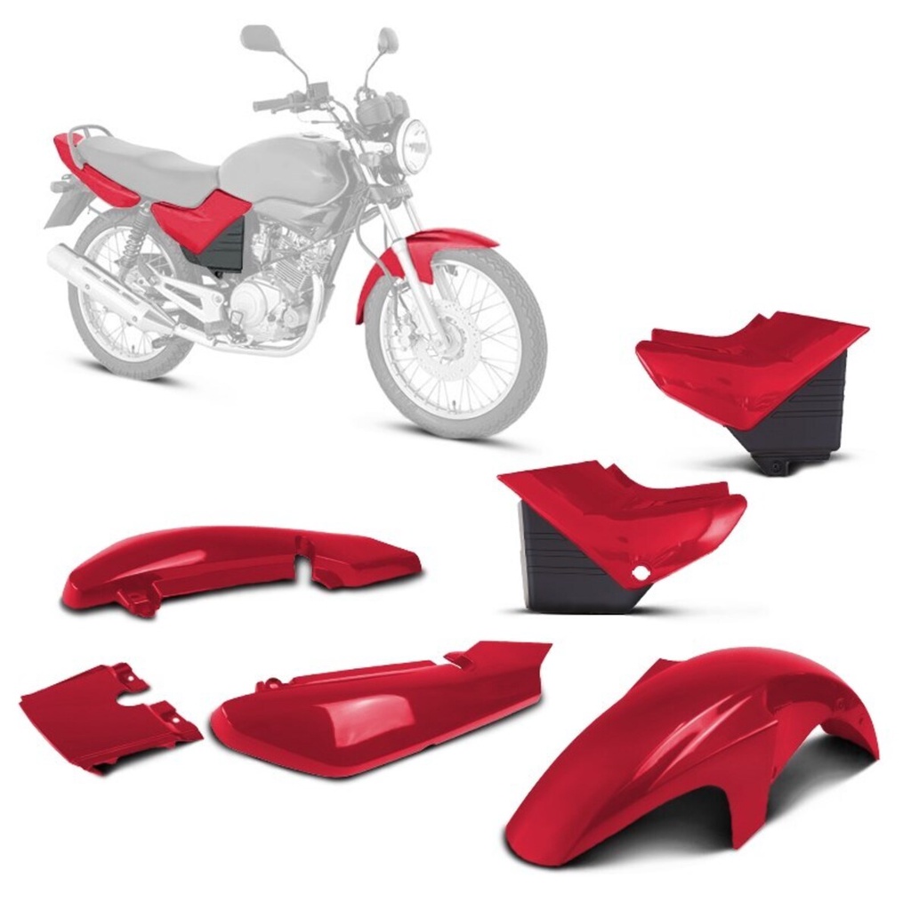 As carenagens e peças plásticas Pro Tork são produzidas nos moldes das peças originais da moto, descartando qualquer tipo de adaptação. Fabricado em ABS 100% virgem, as carenagens Pro Tork são extremamente resistentes aos raios UV, tornando-se assim o melhor custo-benefício do mercado. Características: - Marca: Pro Tork; - Modelo: Original; - Tonalidade de cores semelhante ao original; - Moto compatível: YBR 125 2000 a 2008 (Confira a relação de cores e anos abaixo). Aplicação: - Azul: 2000 e 2001; - Azul: 2004 e 2005; - Bege: 2003; - Prata: 2000, 2001 e 2002; - Prata: 2004, 2005, 2006, 2007 e 2008; - Preto: 2002, 2003, 2004, 2005, 2006, 2007 e 2008; - Roxo: 2002, 2003 e 2008; - Verde: 2000 e 2001; - Verde: 2006 e 2007; - Vermelho: 2000, 2001 e 2008; - Vermelho: 2001; - Vermelho: 2002; - Vermelho: 2003 e 2004; - Vermelho: 2005, 2006, 2007 e 2008. Componentes do Kit: - 1 Paralama Dianteiro; - 1 Rabeta; - 1 Tampa Lateral (Par). Atenção! - Devido ao desgaste da pintura da motocicleta com o passar do tempo, pode haver uma pequena divergência na tonalidade das cores. Instalação: - Antes de finalizar a compra, certifique-se de que sua moto seja compatível com algum dos modelos acima. Pois o produto é pronto para instalação e não necessita de nenhum tipo de adaptação; - Para realizar a instalação, leve sua moto à uma oficina especializada; - A Sportbay não se responsabiliza pela má instalação do produto. OBS: - Pode haver diferença de tonalidade entre a imagem e o produto real por conta do tratamento de imagens e a calibração de cores da tela de seu monitor ou aparelho. Sportbay - Seu Esporte, Nossa Paixão.
