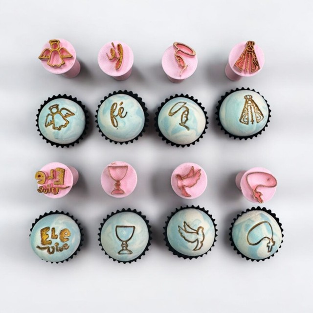 Kit Carimbo Brigadeiro Marcador Para Docinho, Massa, Chocolate e Doce Batizado Batismo - 8 peças