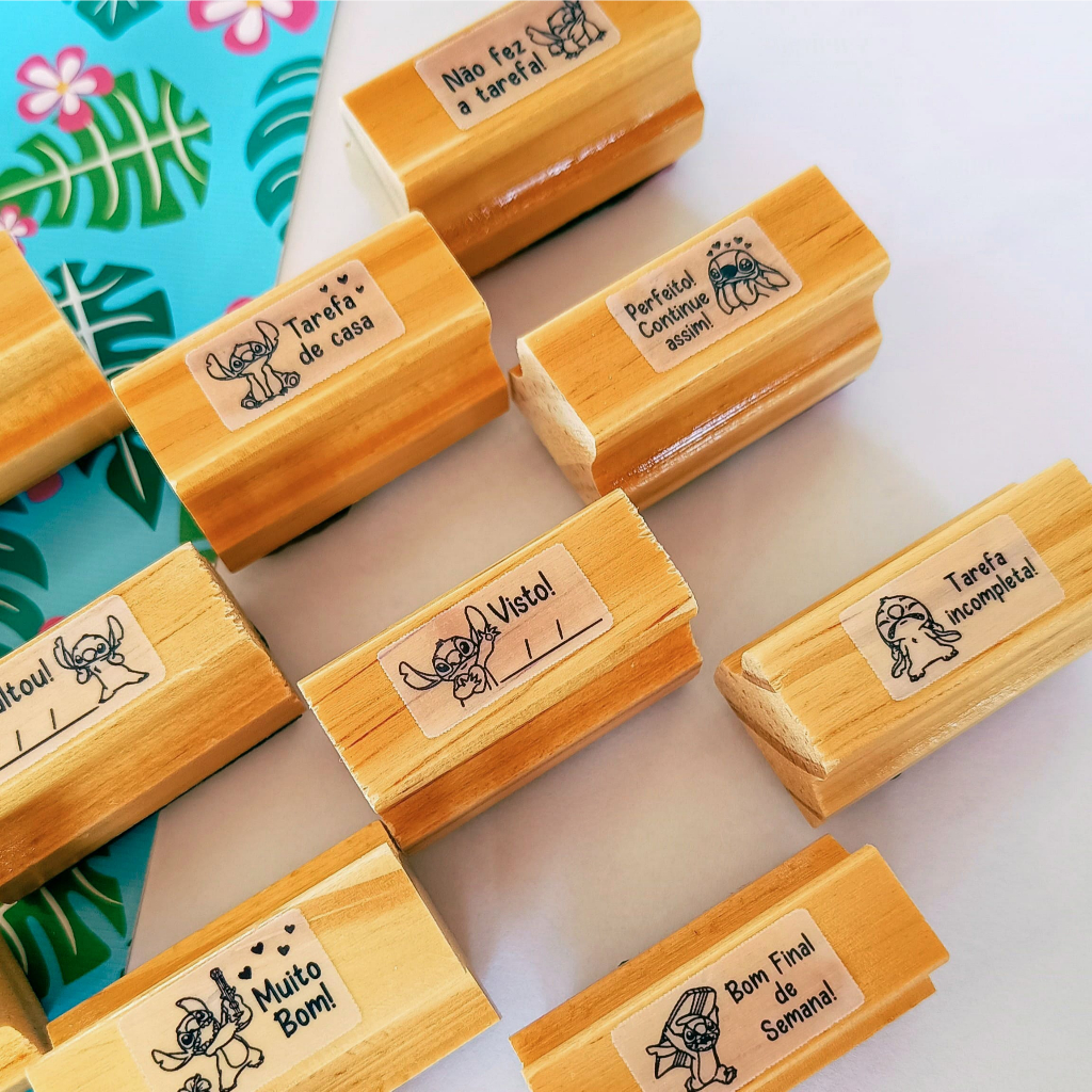 Kit Carimbo Pedagógico Stitch - 4x2cm Carimbo Escolar Infantil para Professores Incentivo Escolar