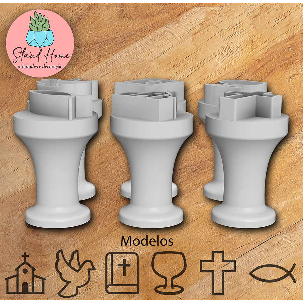 Os carimbos para doces e brigadeiros da STAND HOME chegaram para deixar sua festa ainda mais divertida. São várias coleções e modelos que podem ser escolhidos conforme o tema da sua festa. A coleção Batizado é composta por 6 modelos diferentes: - Igreja; - Bíblia; - Cruz; - Cálice; - Pomba; - Peixe. Nossos carimbos podem ser utilizados para decorar brigadeiros, pasta americana, pasta de leite em pó, biscuit e massas semelhantes. Para estampar a figura basta pressionar com delicadeza o carimbo na peça a ser personalizada. DIMENSÕES - Altura total do carimbo: 3,1 cm - Área útil de estampa: 1,9 cm de diâmetro - Altura da estampa: 0,5 cm - Obs.: As dimensões de cada figura variam de acordo com o formato do desenho, não ultrapassando os 1,9 cm de área útil. CARACTERÍSTICAS - Confeccionado em PLA (material biodegradável elaborado a partir do processamento de cana-de-açúcar ou milho), através do processo de impressão 3D. CUIDADOS - Após a utilização, os carimbos podem ser lavados com água na temperatura ambiente e detergente neutro. - O material é sensível a temperaturas elevadas, nunca devendo exceder 50° graus a fim de evitar que os carimbos possam deformar. Se ainda restam dúvidas sobre o produto ou algum pedido especial, não deixem de nos chamar no chat. * A cor dos carimbos pode variar conforme disponibilidade.