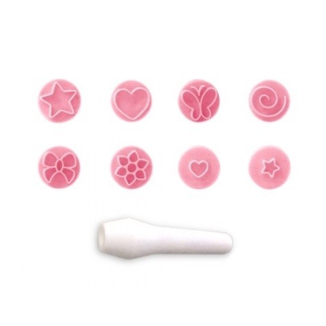 Kit Carimbos ESSENCIAIS Marcador Brigadeiros, Massas, Doces - Blue Star O Kit Essenciais vem com desenhos muito fofinhos que podem ser usados em diversas ocasiões. Ele conta com 8 carimbos e 1 cabo. Com cabo para encaixar Tamanho da marcação: 8mm Disponível na cor: Amarelo e Rosa