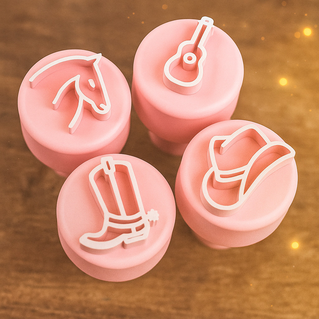 Kit Carimbos para Brigadeiro Docinho CowBoy Country Sertanejo Cavalo com 4 Peças