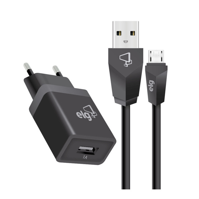 Kit Carregador Parede Universal, Cabo Micro-USB 1 Metro, Carga Rápida 2.4A 12W, Preto, KT510WC, ELG