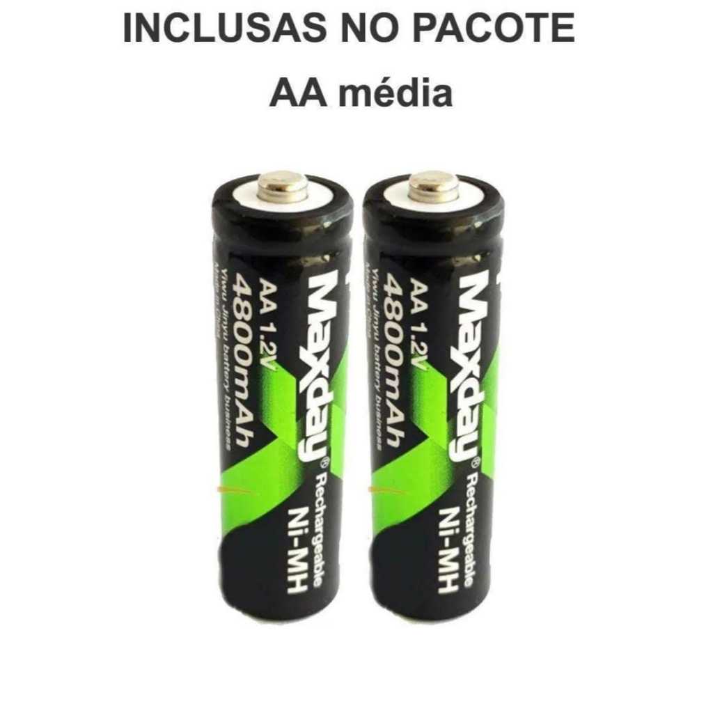 Kit Carregador Portátil + 2 Pilhas AA4800mah Recarregáveis-Atacado
