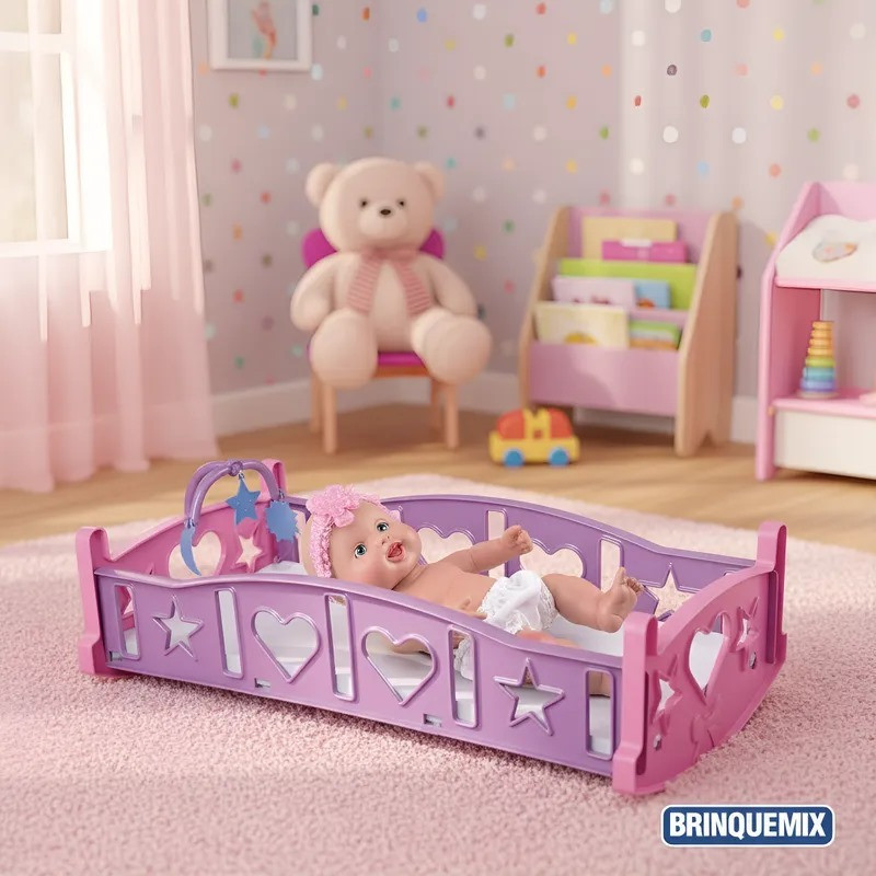 Kit Carrinho e Berço de Boneca – Diversão Completa para as Crianças! Transforme as brincadeiras das crianças em momentos cheios de imaginação e cuidado com este lindo kit de Carrinho e Berço para Boneca. Ideal para incentivar o faz-de-conta, o kit traz tudo o que é preciso para que os pequenos cuidem das bonecas como se fossem de verdade. Instruções para montagem do berço; 1- Abra as laterais do berço e deixe na posição vertical. Encaixe as cabeceiras nos pontos de encaixe do berço. 2- Monte o móbile encaixando as duas hastes. 3- Depois de montado, fixe o móbile no pontode encaixeda cabeceira. Características do Kit: Carrinho leve e prático, perfeito para passear com as bonecas. Berço portátil para as bonecas descansarem com conforto. Design moderno, cores delicadas e acabamento seguro para crianças. Material resistente e fácil de limpar. Tamanho ideal para bonecas de até 40 cm Dimensões Aproximadas do Carrinho: 29cm x 46cm x 72cm (Altura x Largura x Comprimento/Profundidade) Perfeito para Presentear: Um presente criativo e educativo que estimula o cuidado, a imaginação e a socialização das crianças.