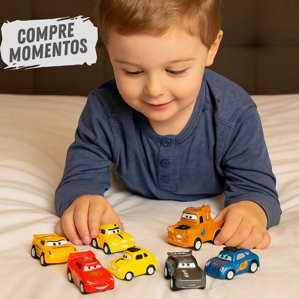 Produto a pronta entrega. Postagens agilizadas através de logística expressa Kit com 6 Mini Carrinhos do Filme Carros – Diversão em Alta Velocidade no Tamanho Ideal! A aventura está garantida com este kit de carrinhos miniatura inspirado no universo do filme Carros da Disney Pixar! São 6 personagens icônicos em versão compacta, com cerca de 5 a 6cm de comprimento e cheios de personalidade: McQueen, Mate, Jackson Storm, Cruz Ramirez, Sally e Luigi. Com o tamanho reduzido, esses carrinhos surpreendem nos detalhes e trazem sistema de fricção, para correrem de verdade! Basta puxar para trás e soltar para vê-los acelerar como nas corridas de verdade. Perfeito para mãos pequenas, para levar para qualquer lugar e para colecionadores que amam versões mini, este kit é pura velocidade, charme e diversão. Aproveite o frete e adicione outros de nossos produtos ao carrinho antes de finalizar a compra.